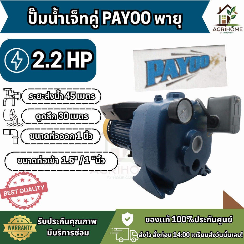 • ปั๊มเจ็ทคู่ PAYOO พายุ 1 นิ้ว 2.2 แรงม้า