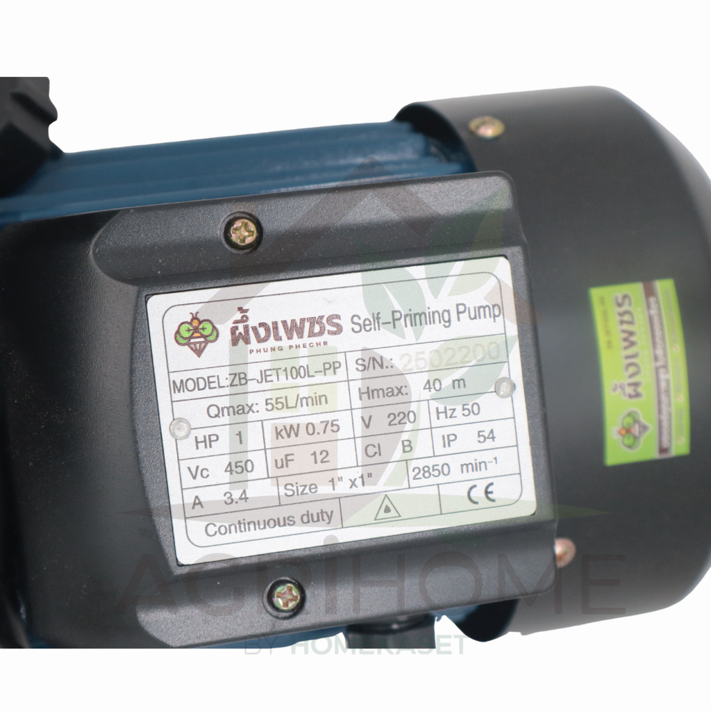 - คุณสมบัติ: กำลังไฟ 750W ส่งน้ำสูง 40 เมตร อัตราการไหล 55 ลิตร/นาที