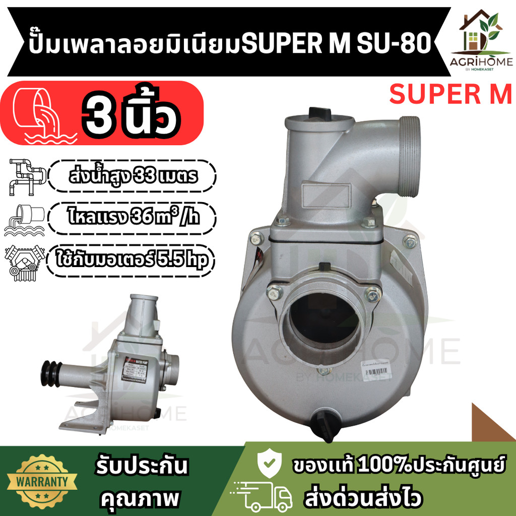 ปั๊มเพลาลอยอลูมิเนียม SUPER M SU-80 3 นิ้ว แข็งแรง ทนทาน ส่งน้ำสูง 33 เมตร