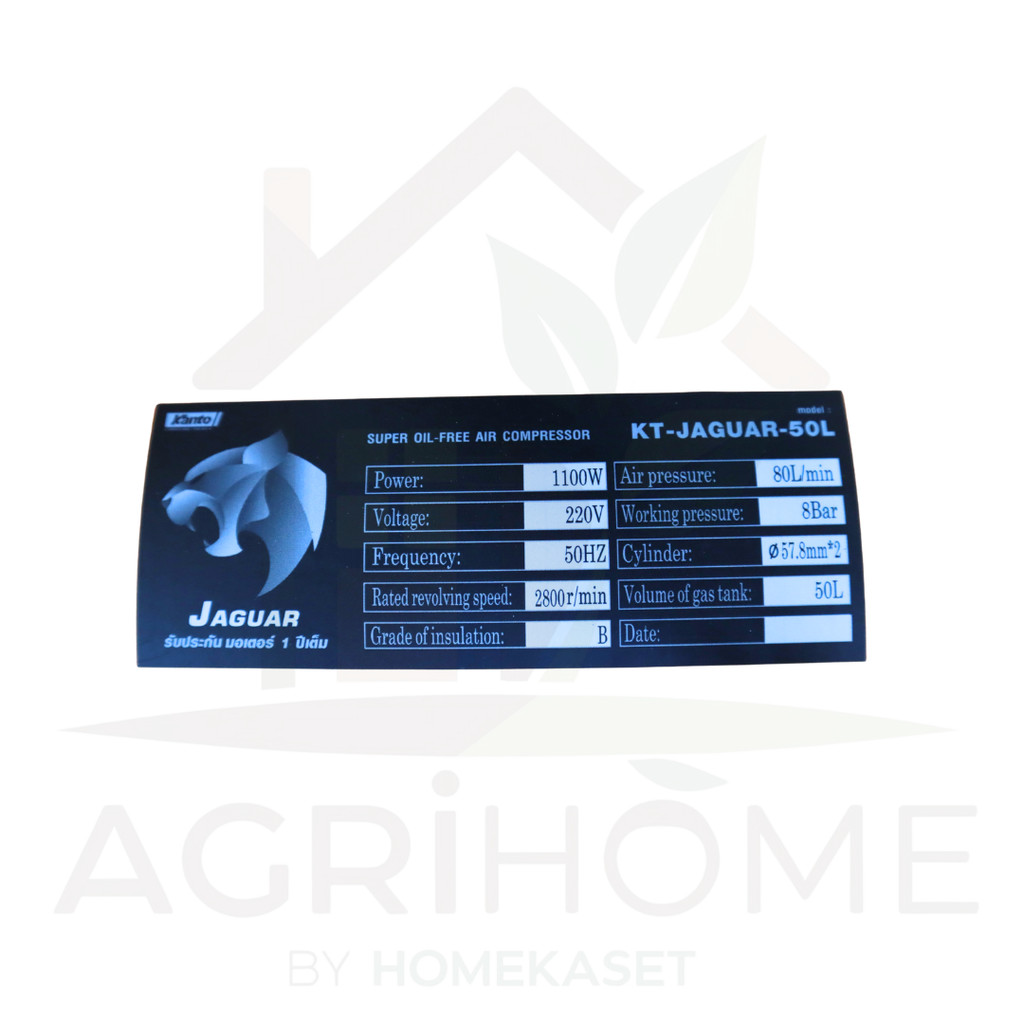 ปั๊มลมออยฟรี KANTO ถัง 50 ลิตร 1100 วัตต์ แรงดัน 8 บาร์ ลมแรง 80 ลิตร/นาที เงียบ ไม่ต้องเติมน้ำมัน