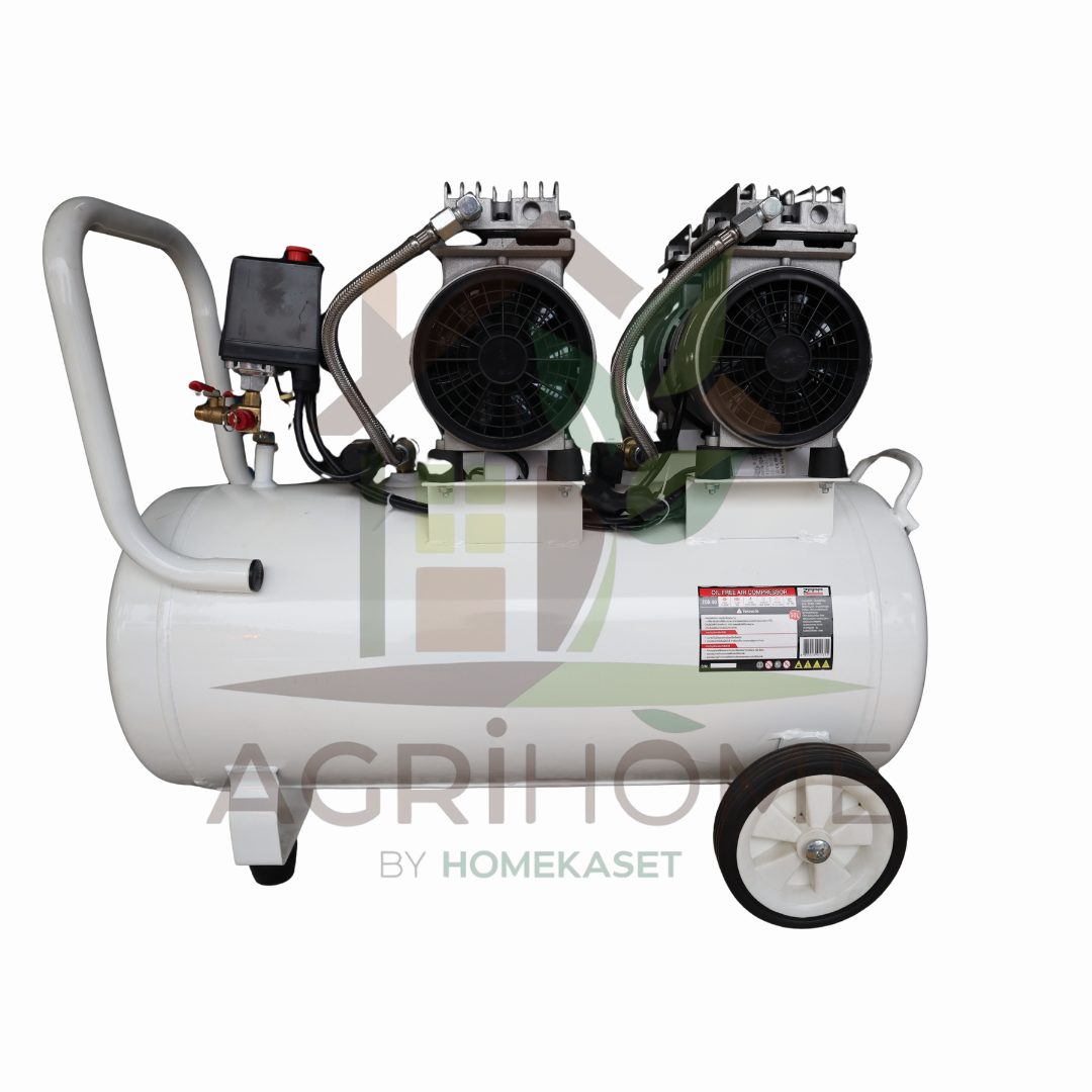 ปั๊มลม Oil Free ZAPP ขนาดถัง 50 ลิตร มอเตอร์กำลัง 1100 วัตต์ ให้แรงดัน 7 บาร์ รอบหมุน 1450 รอบ/นาที พร้อมอัตราการจ่ายลม 214 ลิตร/นาที ทำงานได้เงียบกว่า ไม่ต้องดูแลเรื่องน้ำมัน เหมาะสำหรับงานในบ้าน งานเกษตร งานฟาร์ม และงานช่างทั่วไป ใช้งานง่าย ทนทาน คุ้มค่าต่อการลงทุน