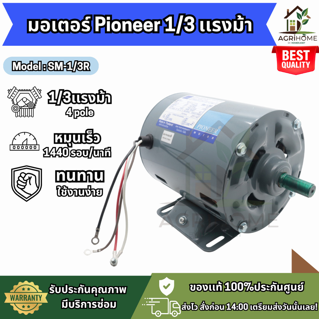 มอเตอร์ Pioneer 1/4 & 1/3 แรงม้า รุ่น SM-1/4R และ SM-1/3R มอเตอร์คุณภาพสูง รอบนิ่ง ทนทาน ใช้งานต่อเนื่อง