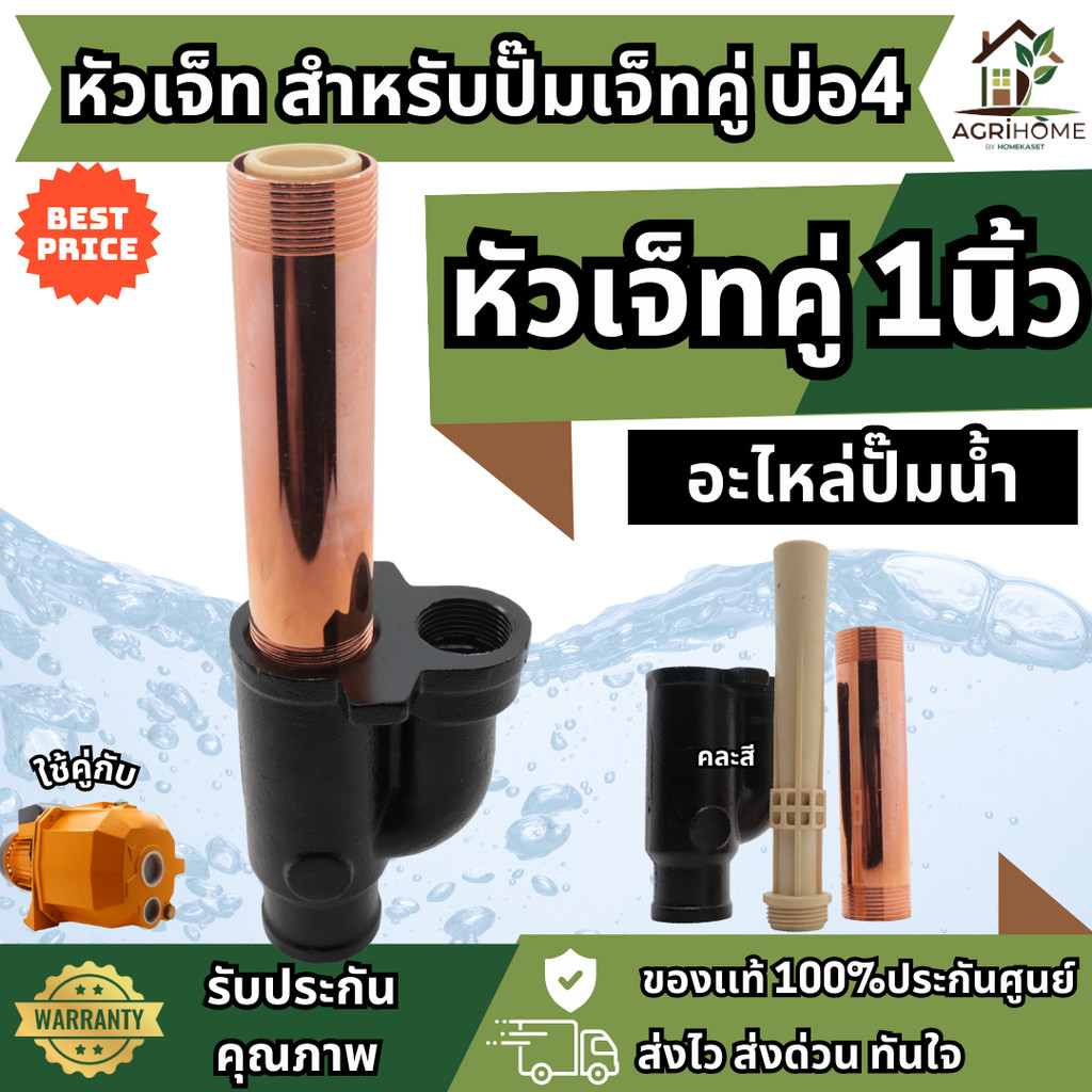 หัวเจ็ทคู่ สำหรับปั๊มเจ็ทคู่ ขนาด 1 นิ้ว บ่อ 4 อุปกรณ์อะไหล่ปั๊มน้ำ ทนทาน ส่งน้ำแรง ใช้งานง่าย
