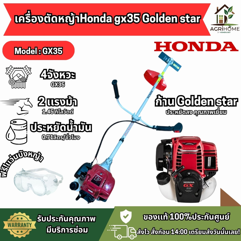 เครื่องตัดหญ้า Honda GX35 Golden Star เป็นรุ่นที่ออกแบบมาพร้อมก้าน Golden Star คุณภาพสูง แข็งแรงและทนทาน ใช้งานต่อเนื่องได้ดี เหมาะสำหรับงานหนักและงานทั่วไป มาพร้อมเครื่องยนต์ 4 จังหวะแรงเต็มกำลัง 2 แรงม้า ประหยัดน้ำมัน และเสียงเงียบ ปลอดภัยต่อผู้ใช้งาน ใช้งานง่าย ตอบโจทย์ทั้งเกษตรกรและเจ้าของบ้าน
