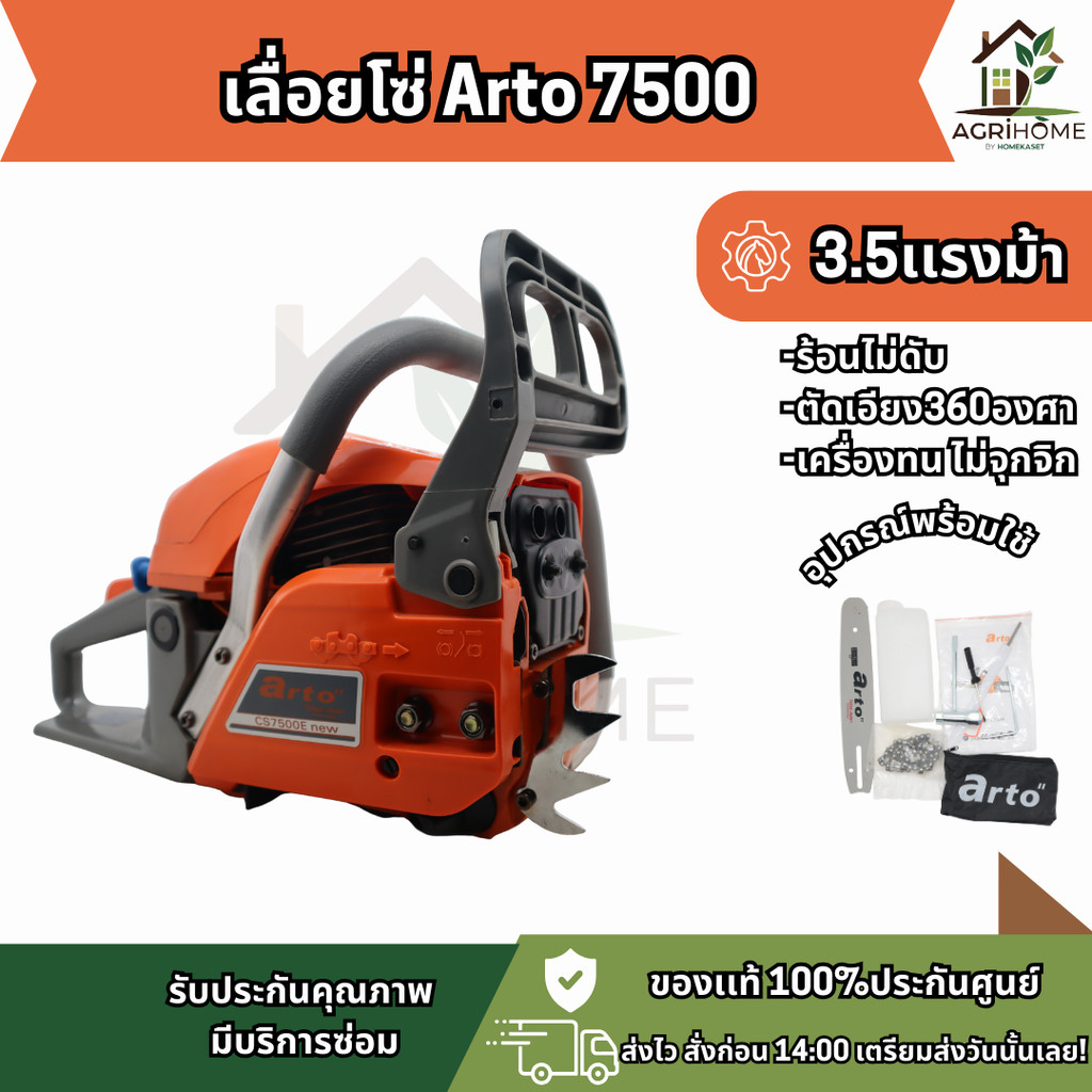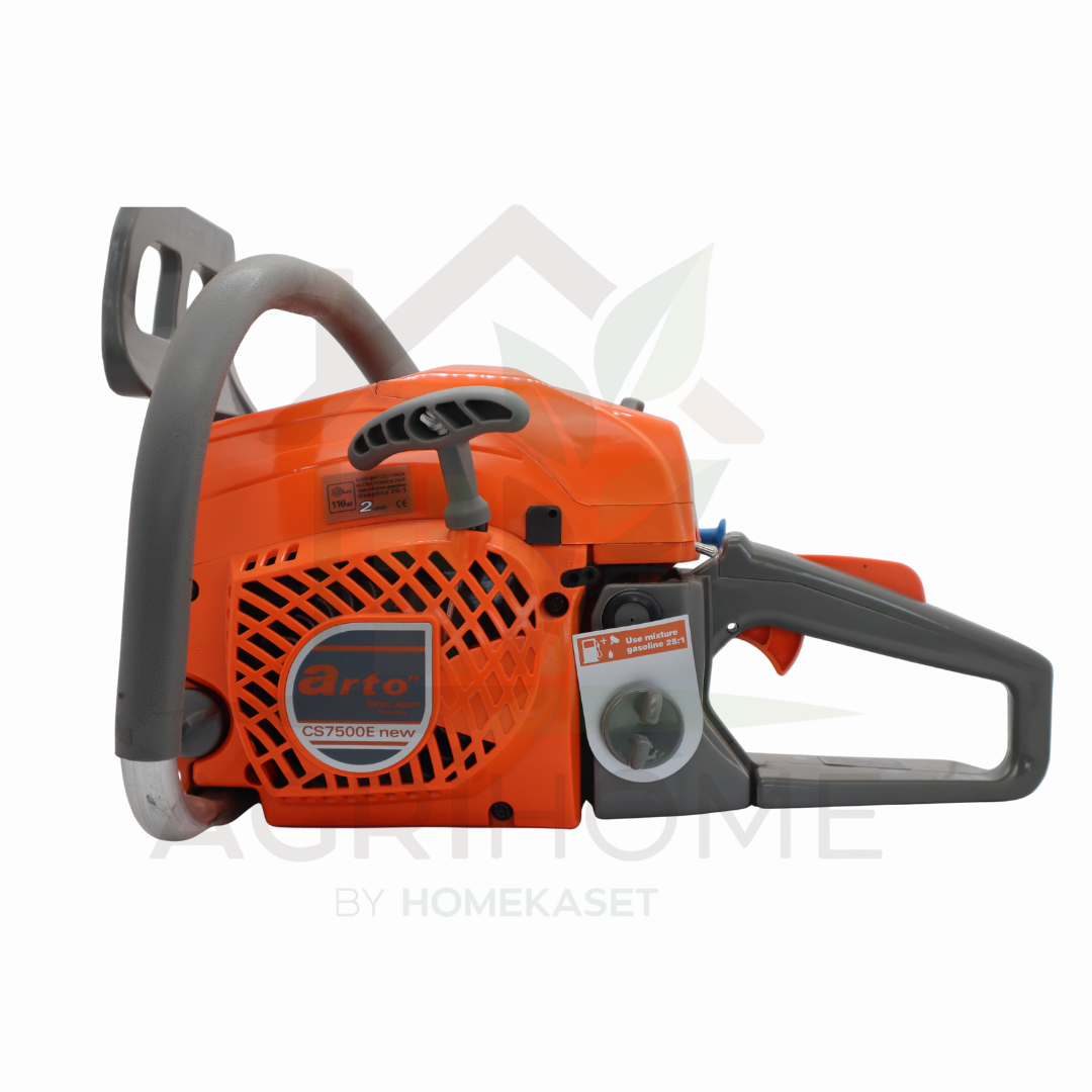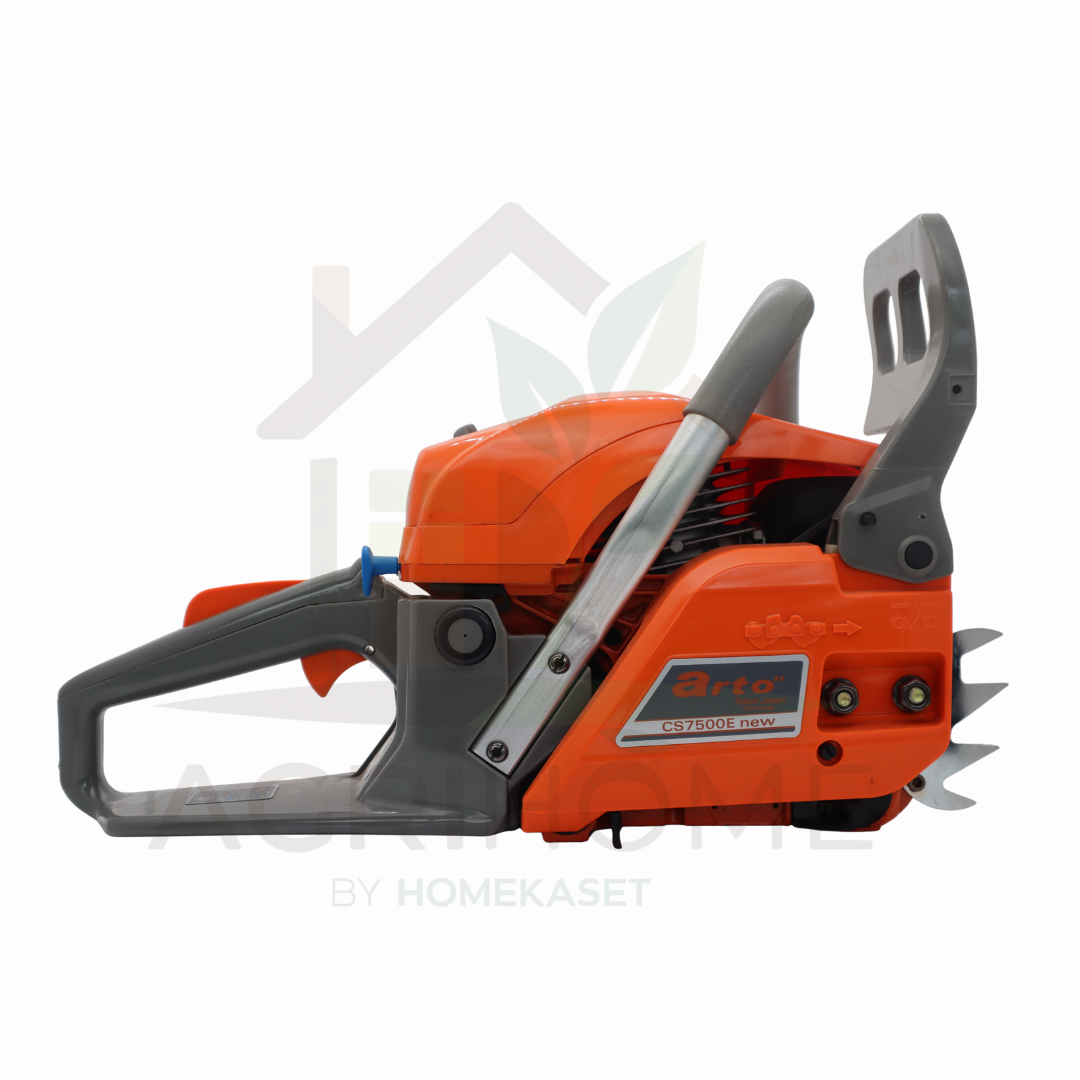 เลื่อยยนต์ Arto 7500 เครื่องแรงบิดสูงสำหรับงานหนักจริงจัง ขนาดเครื่องยนต์ 56.4 CC กำลัง 3.5 แรงม้า มาพร้อมบาร์ 11.5 นิ้ว ตัดไม้ได้ลื่นรวดเร็ว ทนทานด้วยเสื้อเครื่องโลหะ ใช้งานต่อเนื่องไม่ต้องกังวลเรื่องความร้อน อะไหล่คุณภาพญี่ปุ่นและสามารถใช้ร่วมกับรุ่น 5200 ได้ ทำให้ซ่อมง่าย ไม่จุกจิก เหมาะสำหรับเกษตรกร ช่างไม้ และผู้ที่ต้องการเลื่อยยนต์ที่ใช้งานได้จริงและคุ้มค่า