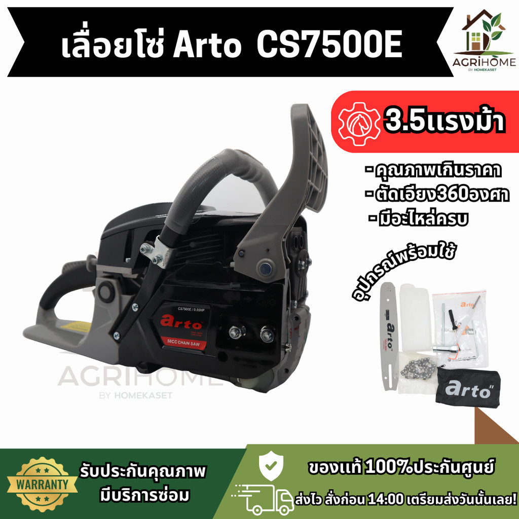 เลื่อยยนต์ Arto CS7500E เลื่อยตัวแรงสำหรับงานหนัก เครื่องยนต์ 3.5 แรงม้า พร้อมบาร์ 11.5 นิ้ว และโซ่ตัดไม้คุณภาพสูง ใช้งานได้รอบทิศทาง 360 องศา เครื่องแรงต่อเนื่องไม่สะดุด ร้อนไม่ดับ สตาร์ทง่าย ดูแลรักษาง่าย คุ้มค่าเกินราคา มีอะไหล่ครบ ซ่อมง่าย รองรับการใช้งานจริงในสวนและงานฟาร์ม