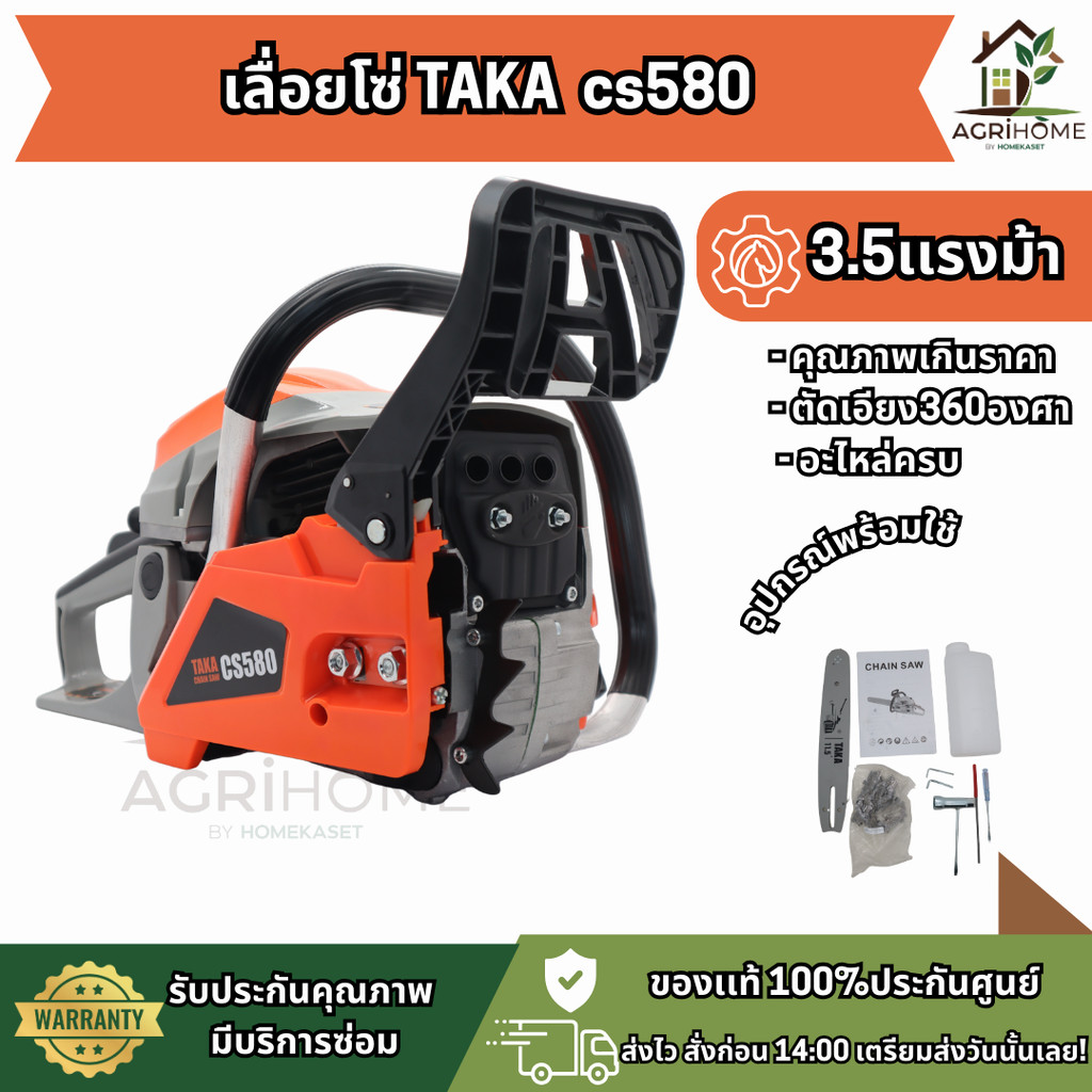 เลื่อยยนต์ TAKA CS580 ตัวแรง 3.5 แรงม้า เลื่อยยนต์ที่ตอบโจทย์งานหนักและงานสวน ใช้งานได้รอบทิศทาง 360 องศา สตาร์ทง่ายด้วยระบบดึงเบา ลูกสูบใหญ่ตัดได้เร็วและแรง บาร์และโซ่ฟันเต็มทนทาน ใช้งานต่อเนื่องได้ทั้งวัน ไม่ต้องกังวลเรื่องความร้อน คุ้มค่าเกินราคา อะไหล่รองรับง่าย มั่นใจใช้งานได้ยาวนาน