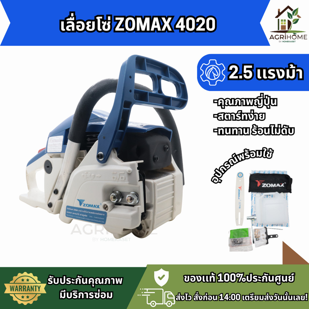 เลื่อยยนต์ ZOMAX ZM4020 เลื่อยยนต์คุณภาพญี่ปุ่น มาพร้อมโซ่แท้ OREGON จากอเมริกา คมทนตัดลื่น เครื่องแรง 2.5 แรงม้า ใช้งานต่อเนื่องได้ยาวนาน เครื่องร้อนไม่ดับ คาร์บูเรเตอร์และหัวเทียนเกรด A ให้กำลังที่เสถียร ปั้มน้ำมันอัตโนมัติช่วยยืดอายุการใช้งานของอะไหล่ ใช้งานได้ทุกองศา ไม่ต้องขอใบอนุญาต มั่นใจได้ว่าถูกต้องตามกฎหมาย คุ้มค่า เหมาะสำหรับทั้งเกษตรกรและช่างไม้มืออาชีพ