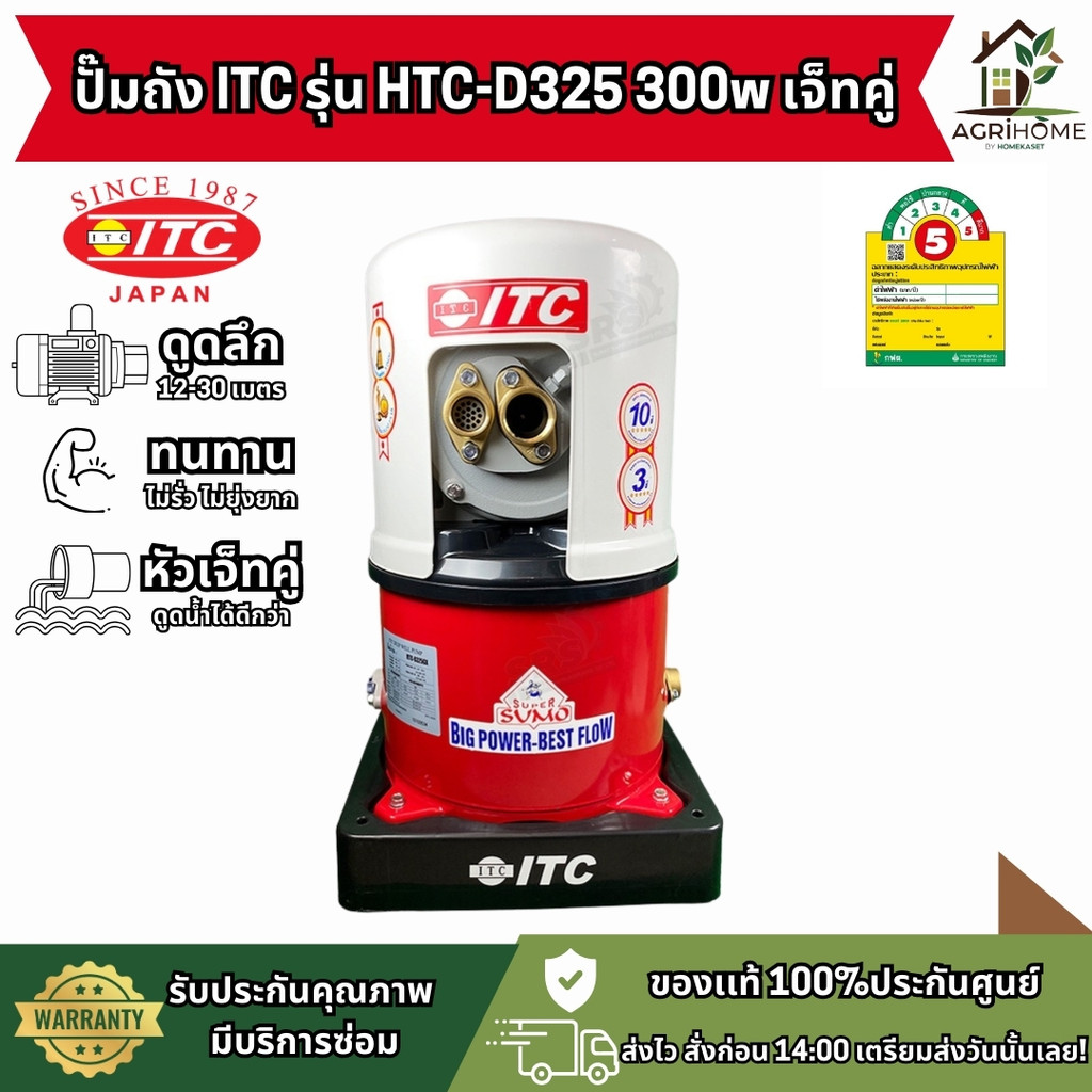 ปั๊มถัง ITC รุ่น HTC-D325 300W เจ็ทคู่ ตัวจริงเรื่องการดูดน้ำลึก พลังแรงเสถียร ใช้งานได้ยาวนาน